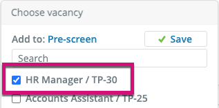 - In the pop up that appears, you will see the current vacancy you are in is preselected.