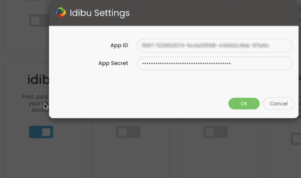 - You will need your idibu App ID and App Secret (provided by your idibu account manager or generated directly on your idibu account).