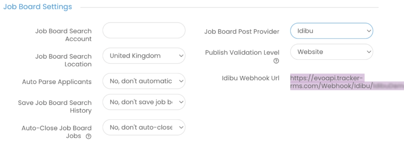 Scroll down to the Job Board Settings section and select idibu as your Job Board Post Provider.