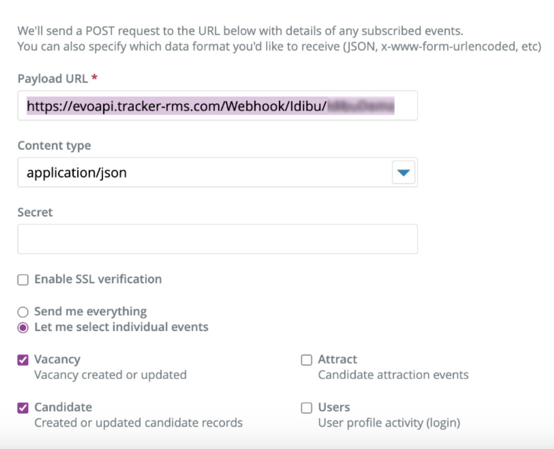 Configure the webhook by pasting the Payload URL you copied in the previous step.