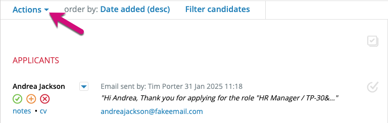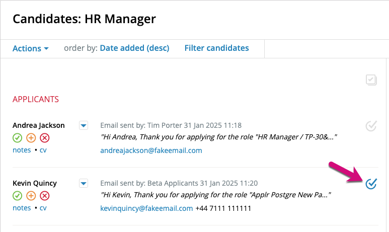 Whether you are viewing all candidates or those against a particular vacancy (with ATS mode on or off) you can use the multi-select feature to add several candidates at once to a new or different vacancy.