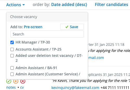 - Tick the vacancy or vacancies you wish to add the candidate to.