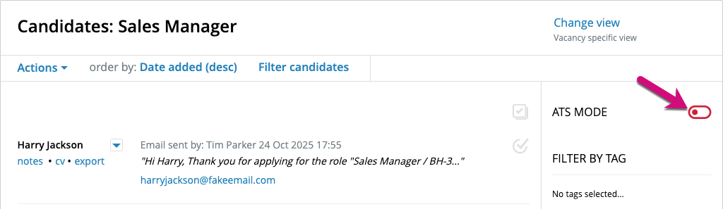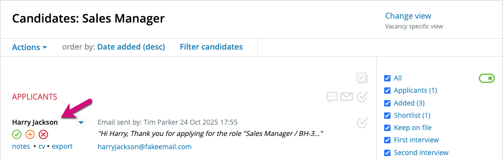 Using either method above will open the Candidates tab filtered to your vacancy. In other words, you will only see candidates listed now who are attached to that vacancy.