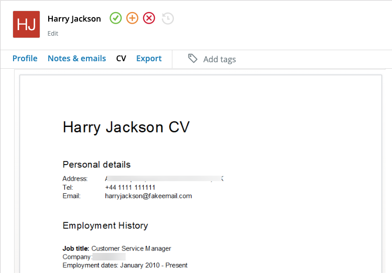 Alternatively, you can click 'CV' under their name to go straight to the CV preview page.