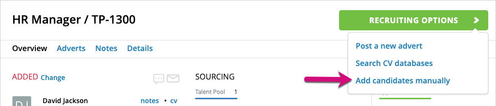 If a candidate has sent you their CV on email, you can also forward that to the CV drop address to create their record.