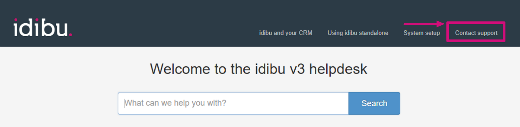 1. From anywhere inside the knowledge base, you can click the 'Contact support' button in the top right-hand corner of the screen