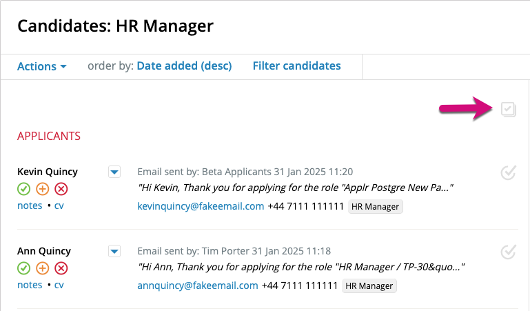 6. Having filtered your candidates by tag you can now either 'select all on page'