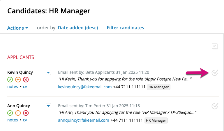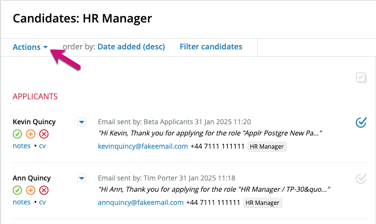 or tick individual candidates to perform your required actions: