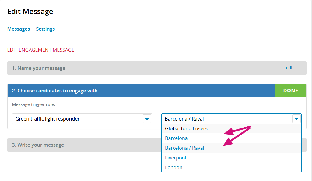 When setting up the message, simply define the appropriate trigger rule to control who the message is assigned to.
