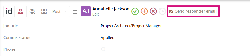 The benefit of autoresponders is that they allow you to both improve and automate the candidate experience simultaneously. You don't even need to approve the email. It is set up by your account administrator**, and the message is tailored to the action you take when you use one of the three buttons above. So you need do nothing else.