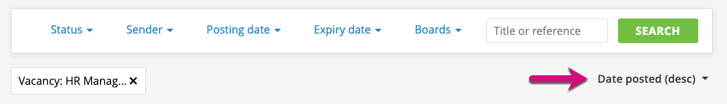 By default, when no filters are in place, the Ad Manager page will display all your posted adverts. The filter bar then allows you to quickly and efficiently change the adverts displayed here, by status, sender, posting date, expiry date, job board and vacancy.