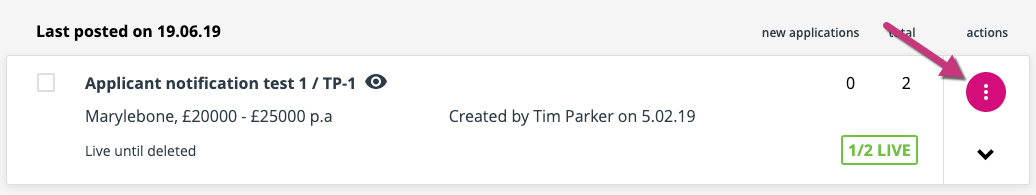 When an advert has been posted to multiple destinations, you can review all of these by expanding the advert panel.