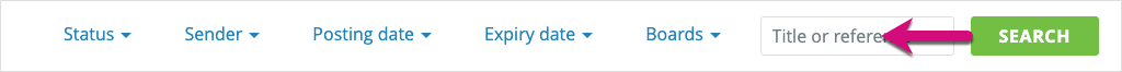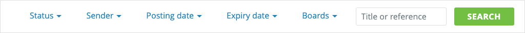 Similar to the ‘sender’ filter, the ‘boards’ filter allows you to view and select the name of any user who is the sender of an advert, either directly from the drop down list or by using the search box to find a specific board name.