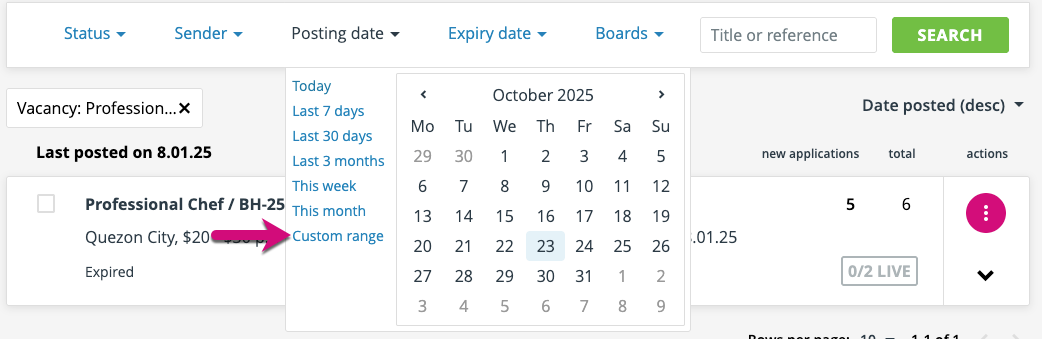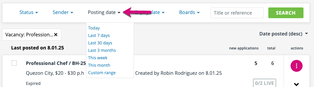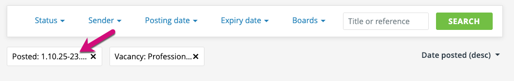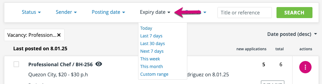 The ‘expiry date’ filter works in exactly the same way as the posting date filter, except of course the parameter used is the date that the advert expires.