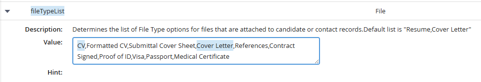The "File Type" field may be utilized by various workflows in Bullhorn and must be correctly filled in for the Bullhorn Amplify product to work.