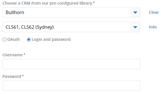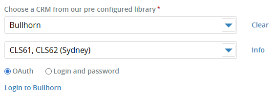 The next step is to connect your Bullhorn account using your login credentials. You have two options here: