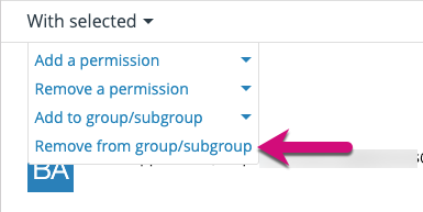 2. A 'With selected' drop down option will appear at the top of the page. Click on this and select 'Remove from group/subgroup'.