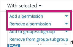 3. You can now choose to either add or remove a permission, and make your selection from the list that appears to the right.