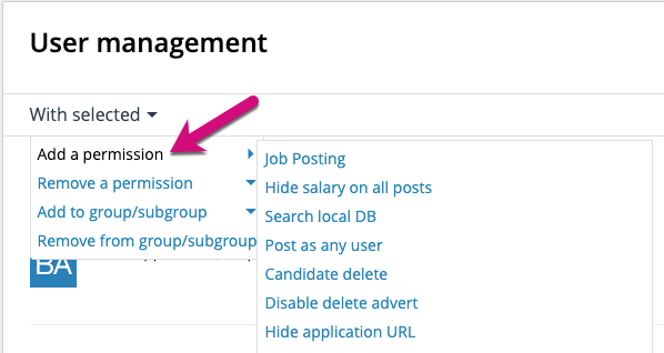 2. All of the available user permissions are listed in the panel on the right hand side. Simple click the tick box against any permissions you wish to allocate or remove.